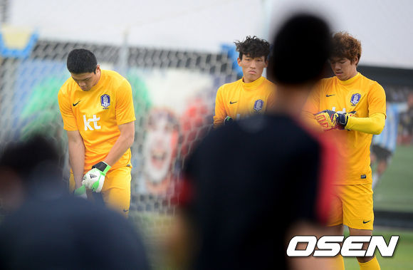정성룡, 김승규, 이범영이 훈련 준비를 하고 있다.