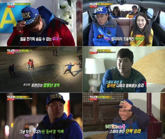 류현진은 MT 저녁식사 준비부터 먹기 직전 자리에 앉기까지 멤버 모두를 탈락시키는 스파이로 활약했다. 제작진이 제시한 미션은 정해진 시간 내에 멤버들의 이름표에 물총을 쏴 비밀리에 탈락시키는 것. 그는 하하를 시작으로, 김종국, 이광수, 수지, 지석진, 유재석, 개리, 송지효의 이름표에 차례로 물총을 쐈다. 대범하지만 민첩하게 움직이며 빠른 속도로 미션을 완수했다.