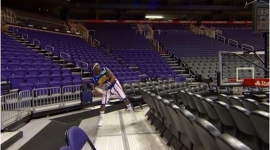 유투브에 함께 올려진 설명에 따르면 이 선수가 던지는 슛은 농구골대에서 33.45m 떨어진 관중석에서 출발한다. 이른바 세계 최장 거리 농구슛인 셈이다. 동영상 속 세계 최장 거러 농구슛은 포물선을 그리며 관중석에서 골대를 향해 날라가 정확하게 들어갔다.