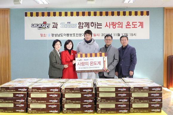 NC 다이노스는 지난 17일 경남 창원시에 위치한 경남아동보호전문기관을 찾아 '사랑의 온도계' 운영을 통해 적립된 치킨 총 400마리를 전달했다.