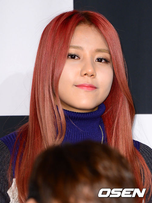 AOA 혜정이 취재진의 질문을 듣고 있다.