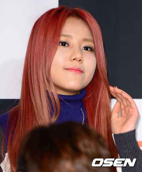 AOA 혜정이 취재진의 질문을 듣고 있다.