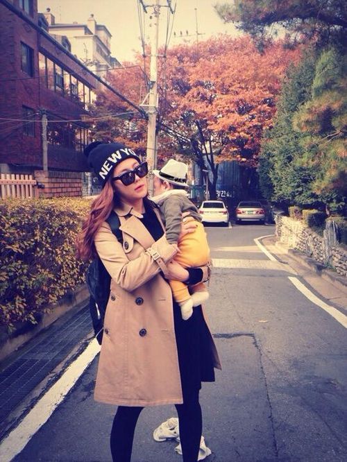 공개된 사진에서 솔비는 멋스러운 비니와 트렌치코트를 입어 가을 분위기를 물씬 풍겼다. 그는 모자로 포인트를 준 조카를 품에 안고 외출에 나서고 있는 모습이다.