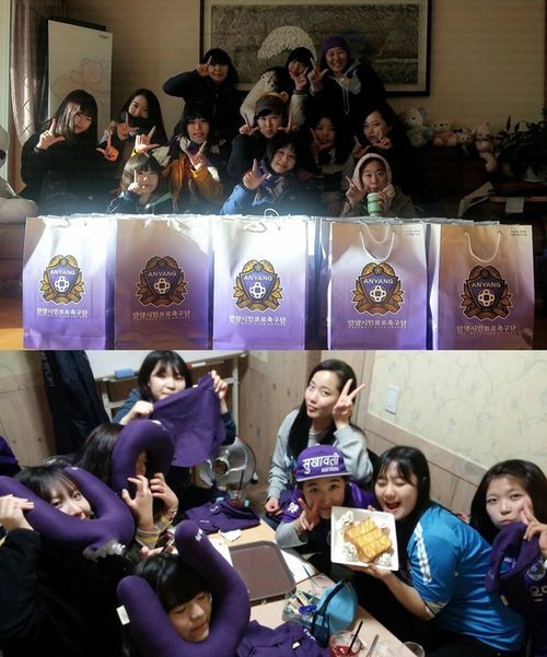 FC안양 선수단이 서포터즈 A.S.U. RED의 소모임 레이디스로부터 특별한 선물을 전달받아 화제가 됐다.