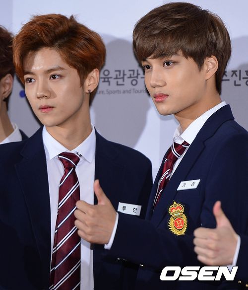 그룹 엑소 루한과 카이가 포토타임을 갖고 있다.