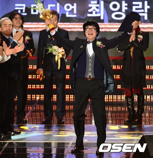 국무총리표창을 수상한 코미디언 최양락이 기뻐하고 있다.