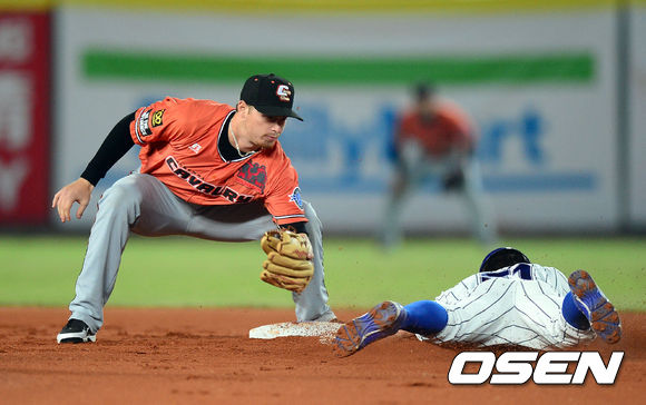 1회말 무사 1루 삼성 정형식이 2루 도루를 성공하고 있다.
