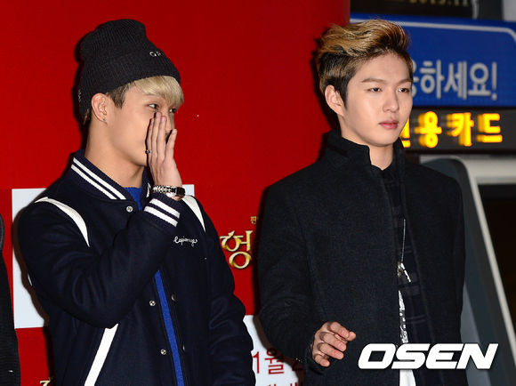 그룹 비투비 임현식과 이창섭이 포토타임을 하고 있다.