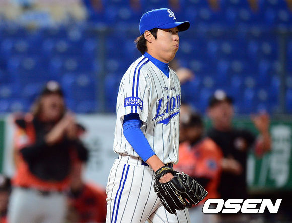 4회초 무사 2루 삼성 차우찬이 호주 버티의 적시타로 실점하자 아쉬워하고 있다.
