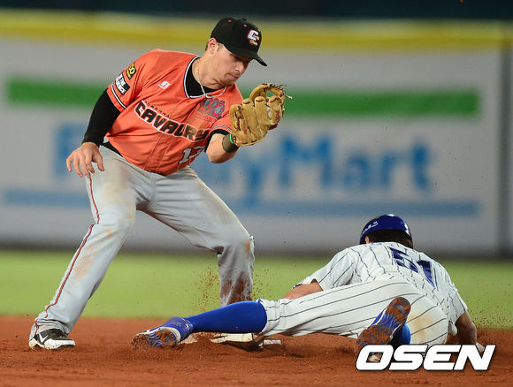 5회말 1사 1루 박한이 타석때 정형싱이 2루 도루를 성공하고 있다.