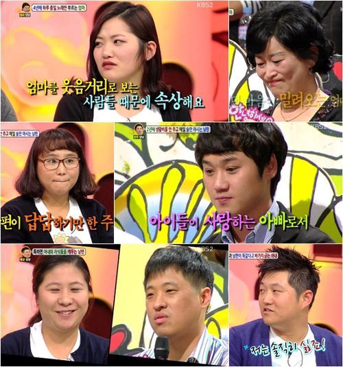 지난 18일 오후 11시 10분에 방송된 KBS2 '대국민 토크쇼 안녕하세요'에는 네 가족이 출연해 남편 혹은 아내 때문에 고민인 다양한 사연을 털어놔 시청자들의 공감을 얻었다.