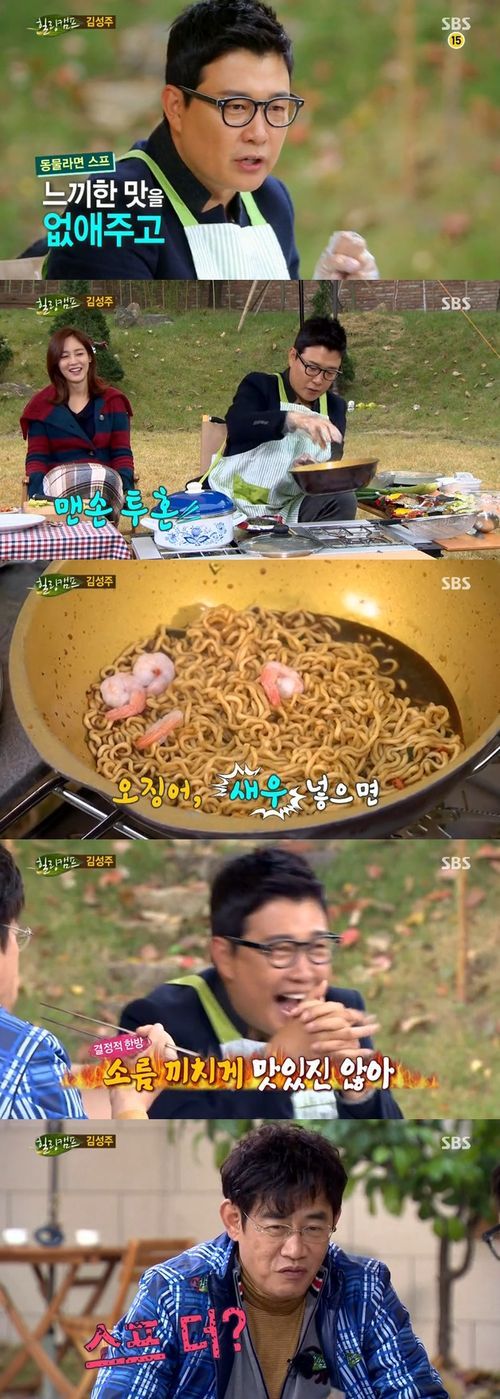 김성주는 지난 18일 방송된 SBS ‘힐링캠프, 기쁘지 아니한가’(이하 힐링캠프)에서 새로운 라면 신메뉴인 ‘해물 짜파구리’를 소개했다.