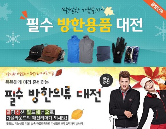 보온력과 방풍의 효과가 뛰어난 클리브랜드 방한 골프장갑을 9900원에 특가 판매하며, 인조오리털 마이크로극세사 웰론패딩은 2만9800원에 구매할 수 있다. 또, 활동성과 기능성을 갖춘 가을,겨울 골프웨어를 최대 70%까지 할인된 가격에 만나볼 수 있다.