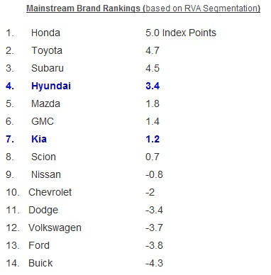 2014년형 엑센트(위)와 잔존가치 메인스트림 브랜드 랭킹./ 현대차 제공.