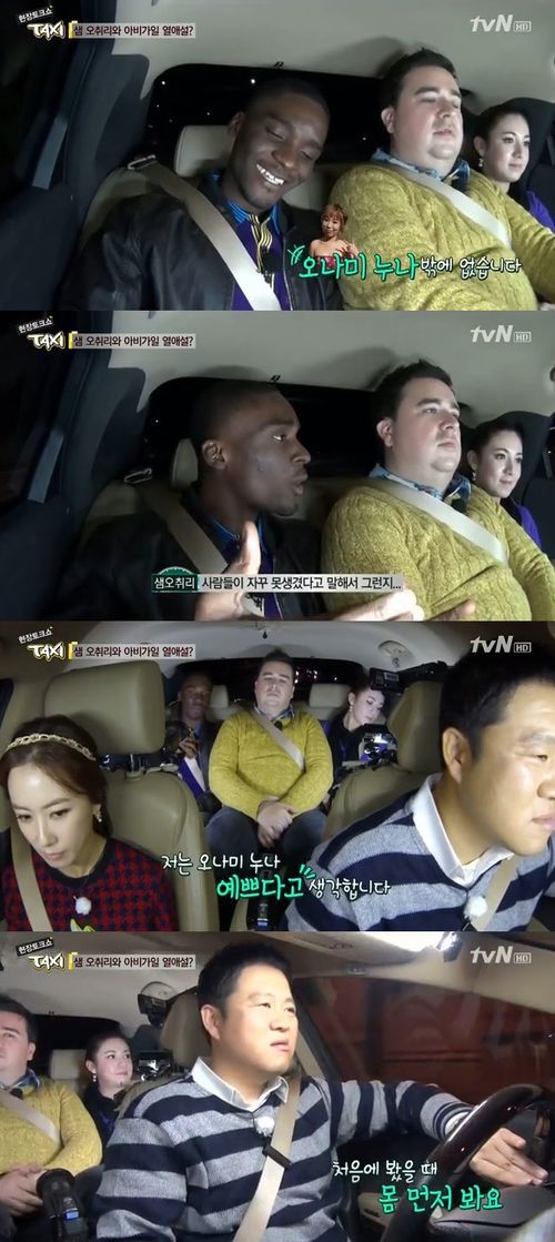 샘 오취리는 “사람들이 자꾸 못생겼다고 해서 그러지만 나는 오나미 누나가 예쁘다고 생각한다”고 밝혔다.