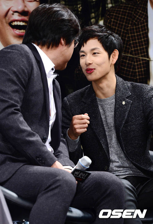 19일 오전 서울 신사동 CGV 압구정에서 열린 영화 '변호인' 제작보고회에서 임시완과 곽도원이 이야기를 나누고 있다.