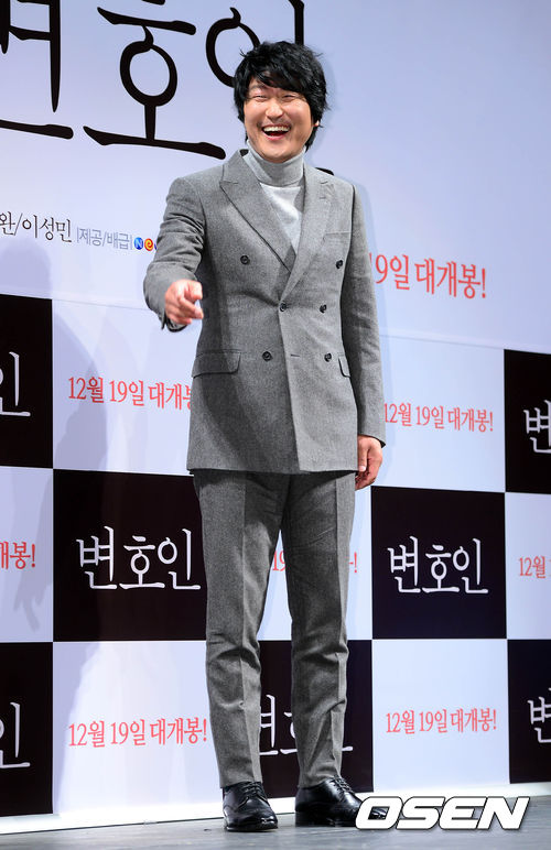 19일 오전 서울 신사동 CGV 압구정에서 열린 영화 '변호인' 제작보고회에서 송강호가 포토타임을 가지고 있다.