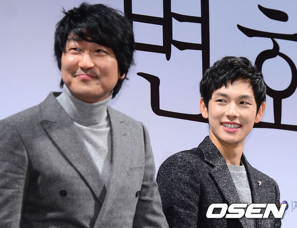 19일 오전 서울 신사동 CGV 압구정에서 열린 영화 '변호인' 제작보고회에서 송강호와 임시완이 포토타임을 가지고 있다.