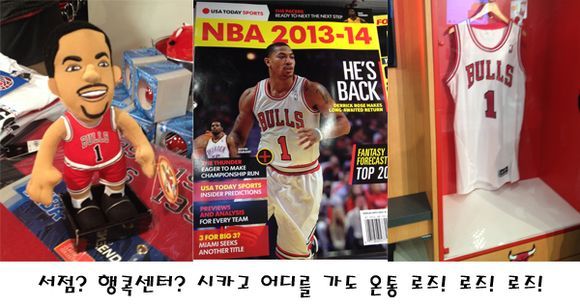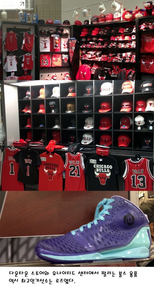 불스용품을 파는 팬스토어도 줄을 서서 입장할 정도로 사람이 많았다. 데릭 로즈의 유니폼부터 인형까지 없는 것이 없었다. 단연 로즈의 티셔츠와 유니폼이 가장 인기가 많았다.