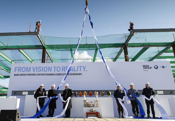 BMW 그룹 코리아가 18일 인천 영종도 BMW 그룹 드라이빙 센터 건설 부지에서 상량식을 개최했다.