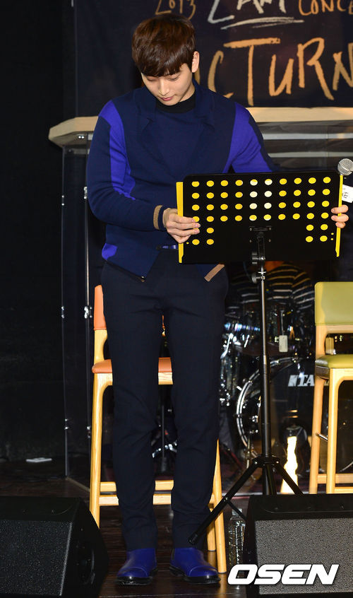 19일 오후 서울 강남구 M아카데미 내 M 콘서트홀에서 열린 그룹 2AM 콘서트 연습 현장 공개에서 2AM 진운이 보면대를 옮기고 있다.