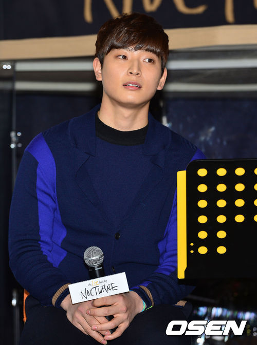 19일 오후 서울 강남구 M아카데미 내 M 콘서트홀에서 열린 그룹 2AM 콘서트 연습 현장 공개에서 2AM 진운이 질문을 듣고 있다
