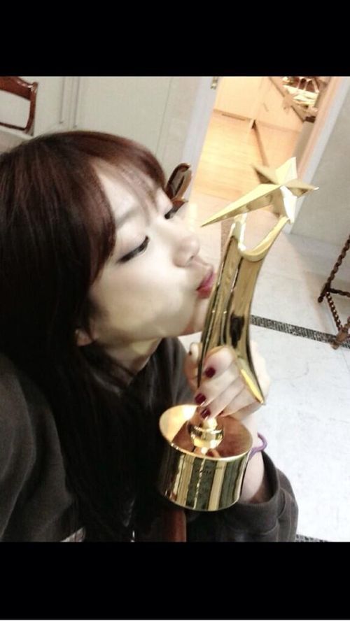 이유비는 19일 자신의 트위터에 "신인상 받았어요. 감사합니다! 헤헷. (원래 이렇게 트로피에 뽀뽀하는 거 맞죠?) 천둥번개가 우르르 쾅쾅 난리났는데 기분이 좋습니다! 앞으로 더 좋은 모습 많이보여드릴게요. 열심히 하겠습니다"라는 글과 함께 사진을 올렸다.