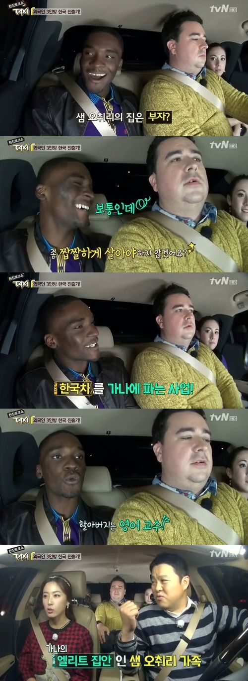 이에 샘 오취리는 “보통으로 산다”며 “아버지는 한국의 중고차를 가나에 파는 사업을 하고 있고 할아버지는 영어교수였다”고 설명했다. 이에 김구라는 “가나 엘리트 집안이다”고 감탄했다.