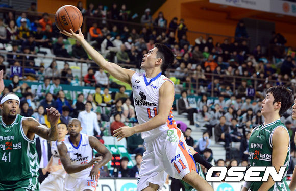 19일 오후 원주종합체육관에서 열린 '2013-2014 KB국민카드 프로농구' 원주 동부 인천 전자랜드의 경기 2쿼터 정병국이 레이업을 시도하고 있다.
