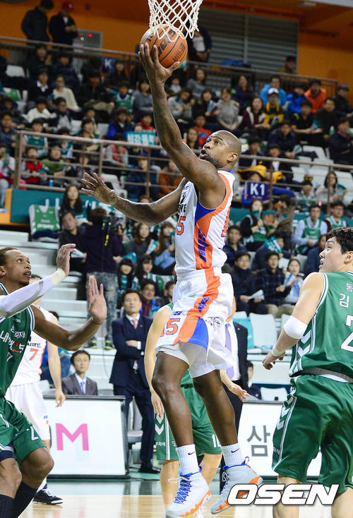 19일 오후 원주종합체육관에서 열린 '2013-2014 KB국민카드 프로농구' 원주 동부 인천 전자랜드의 경기 2쿼터 포웰이 슛을 시도하고 있다.