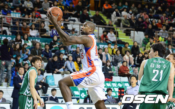 19일 오후 원주종합체육관에서 열린 '2013-2014 KB국민카드 프로농구' 원주 동부 인천 전자랜드의 경기 2쿼터 포웰이 슛을 시도하고 있다.