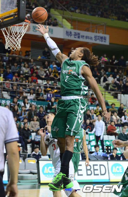 19일 오후 원주종합체육관에서 열린 '2013-2014 KB국민카드 프로농구' 원주 동부 인천 전자랜드의 경기 3쿼터 렌들맨이 슛을 시도하고 있다.