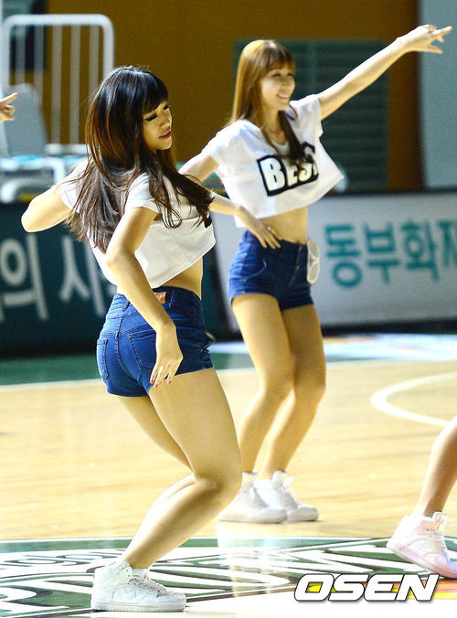 19일 오후 원주종합체육관에서 열린 '2013-2014 KB국민카드 프로농구' 원주 동부 인천 전자랜드의 경기, 치어리더들이 공연을 펼치고 있다.