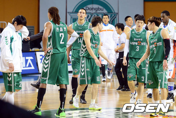 19일 오후 원주종합체육관에서 열린 '2013-2014 KB국민카드 프로농구' 원주 동부 인천 전자랜드의 경기 종료 후 동부 선수들이 지친 표정을 짓고 있다.