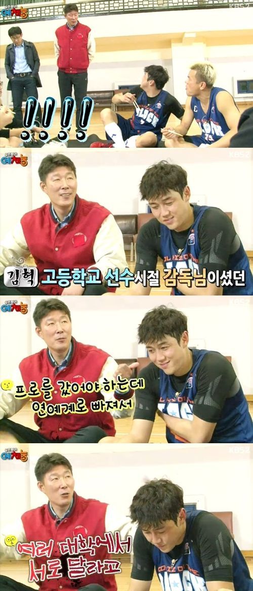 감독은 김혁에 대해 "정말 잘했던 선수다. 스카우트 경쟁까지 붙었던 유망주였다"라고 설명하며 "농구를 해야 했는데 연예계로 빠졌다"고 안타까워해 김혁을 쑥스럽게 했다.