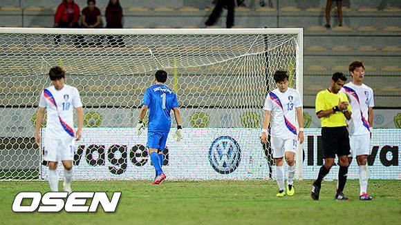 후반 역전골을 허용한 정성룡 골키퍼가 아쉬워하고 있다.