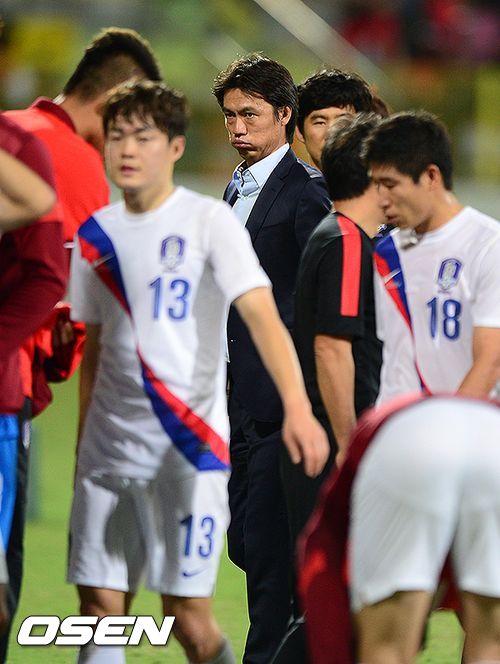 경기종료 후 홍명보 감독이 한숨을 몰아쉬고 있다./jpnews@osen.co.kr
