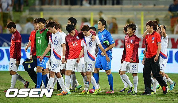 경기종료 후 축구대표팀 선수들이 패배에 아쉬워하고 있다/jpnews@osen.co.kr