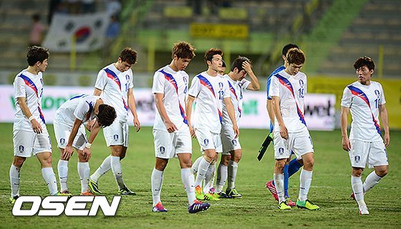 경기종료 후 축구대표팀 선수들이 패배에 아쉬워하고 있다/jpnews@osen.co.kr