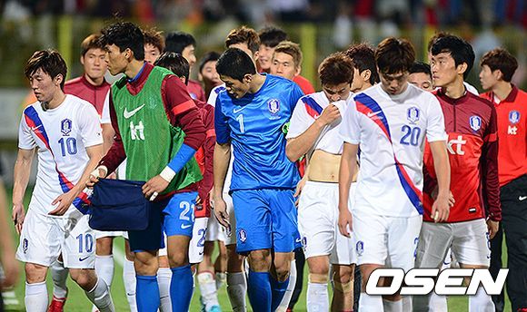 경기종료 후 축구대표팀 선수들이 아쉬워하고 있다./jpnews@osen.co.kr