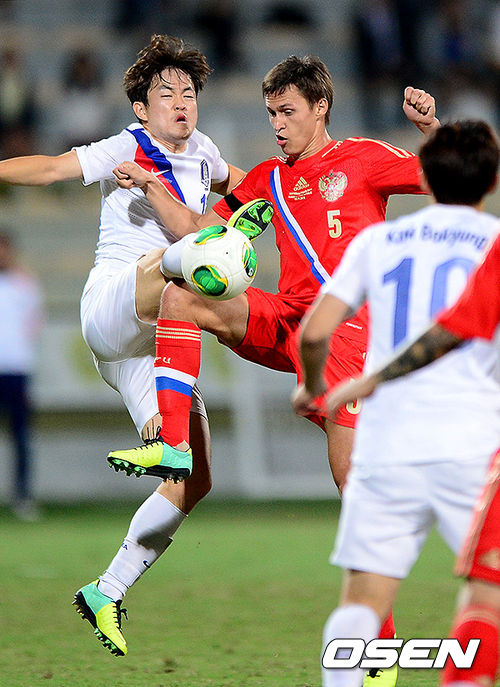 후반 신광훈이 러시아 공격수를 수비하고 있다./jpnews@osen.co.kr