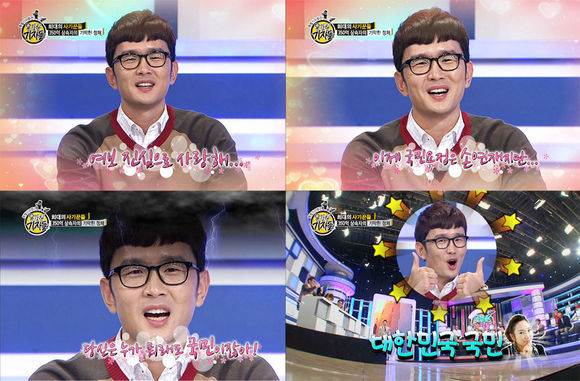 또 아내 정경미에게 영상편지를 보내면서 "여보 사랑해. 이제 국민요정은 손연재이지만 당신은 누가 뭐래도 국민이잖아"라고 말하며 재치있는 입담을 과시했다.