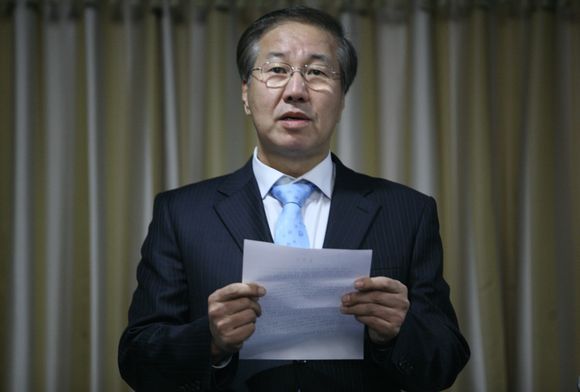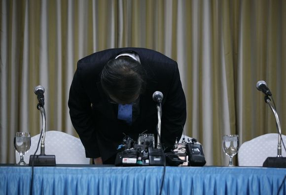 19일 기자회견에서 사과문을 발표하고 있는 박승한 대한씨름협회장(제공=대한씨름협회)