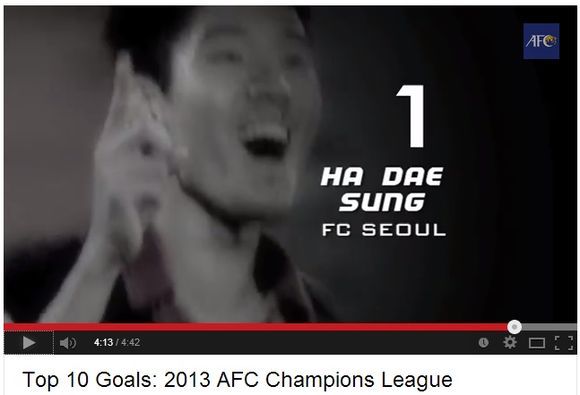 AFC는 20일(이하 한국시간) 공식 페이스북을 통해 올 시즌 ACL 최고의 골 베스트 10을 선정, 발표했다. ACL 최고의 골 베스트 10은 약 5분 가량의 동영상으로 제작됐는데, 그 중 1위에 선정된 골이 바로 에스테그랄(이란) 원정에서 터진 하대성의 골이다.