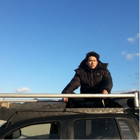 사진 속 임슬옹은 검은 패딩 점퍼를 입고 파란 하늘을 배경으로 카메라를 응시하고 있다. 자동차 위에 올라 앉아 포즈를 취한 그의 모습이 눈길을 끈다.