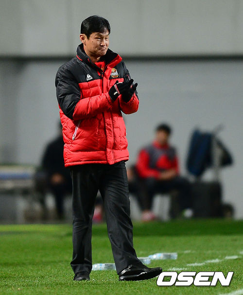 전반 서울 데얀이 선제골에 최용수 감독이 박수를 보내고 있다.