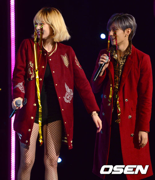 20일 오후 경기도 고양시 일산 장항동 빛마루 방송지원센터에서 열린 MBC MUSIC '쇼 챔피언'에서 트러블메이커 현아와 현승이 1위 퍼포먼스를 하고 있다.