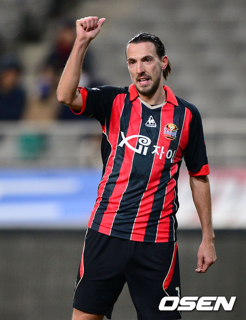 전반 서울 데얀이 공격에 가담해 센터링을 올린 차두리에 엄지를 들어올리고 있다.