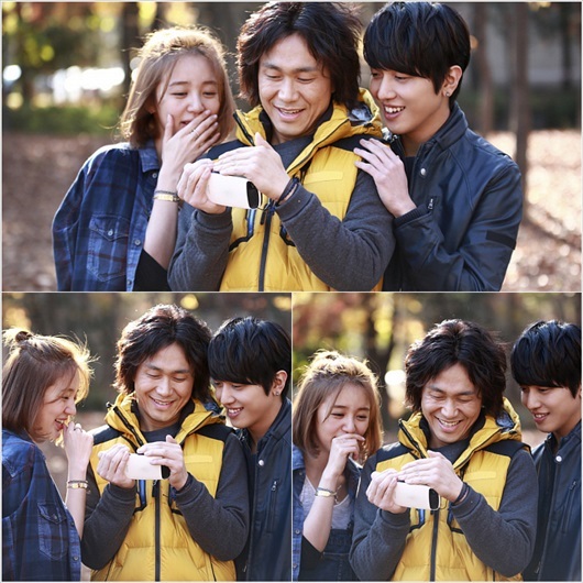 이와 관련 윤은혜와 정용화, 오정세가 함박웃음을 보이며 친밀한 분위기를 드러내는 장면이 포착돼 눈길을 끈다. 사진 속에는 촬영을 준비하는 동안 서로의 모습을 휴대전화 카메라에 담아주는 것은 물론, 마치 실제로 소풍을 나온 듯이 함께 사진을 찍고 확인하며 장난을 치는 등 현장을 화기애애하게 달구는 정다운 모습이 담겼다.