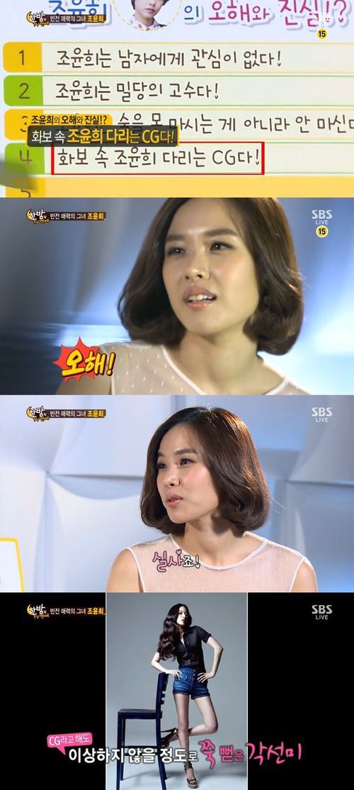 조윤희는 20일 방송된 SBS ‘한밤의 TV연예’와의 인터뷰에서 김일중 아나운서가 “화보 속 각선미가 CG냐”고 묻자 “오해다”고 말했다.